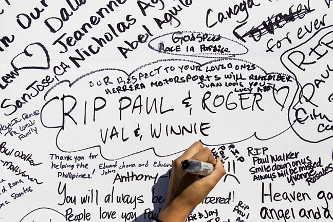 Χιλιάδες άνθρωποι συγκεντρώθηκαν χθες στην Καλιφόρνια, στο σημείο όπου άφησε την τελευταία του πνοή πριν λίγες μέρες σε τροχαίο ο ηθοποιός Πολ Γουόκερ, αποτίοντας φόρο τιμής στη μνήμη του 40χρονου ηθοποιού και του φίλου του Ρότζερ Ρόντας που επέβαινε στη μοιραία Πόρσε.