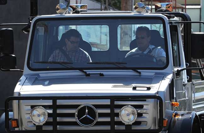 Ξέραμε ότι ο «Terminator» δεν προτιμά τα μικρά, αυτός όμως έκανε την απόλυτη διαφορά και επέλεξε το θηριώδες Mercedes Unimog U 4000/U 5000 για τις καθημερινές του μετακινήσεις.