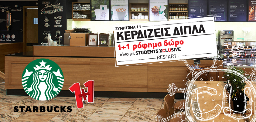 Το CU κερνάει Starbucks! ΠΕΤΡΕΣ ΚΑΙ ΠΛΑΚΕΣ ΓΙΑ ΧΤΙΣΙΜΟ ΚΑΙ ΔΑΠΕΔΑ Όσοι έχουν τη φοιτητική Χclusive προσφορά αγοράζοντας ένα ρόφημα κερδίζουν άλλο ένα