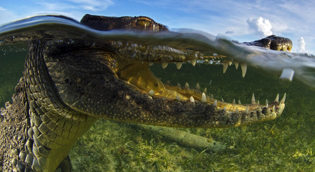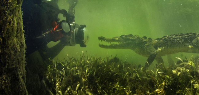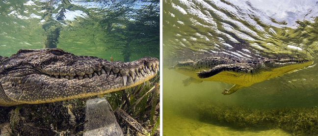 Σε πολύ δύσκολη- και ταυτόχρονα πολύ προνομιούχα- θέση βρέθηκε ο φωτογράφος Octavio Aburto καθώς κολυμπούσε σε θολά νερά στη μεξικανική Καραϊβική. Ξαφνικά εμφανίστηκε μπροστά του ένας κροκόδειλος, ο οποίος στάθηκε, σχεδόν σαν να ποζάρει, ΝΤΕΤΕΚΤΙΒ μπροστά στη φωτογραφική του μηχανή.