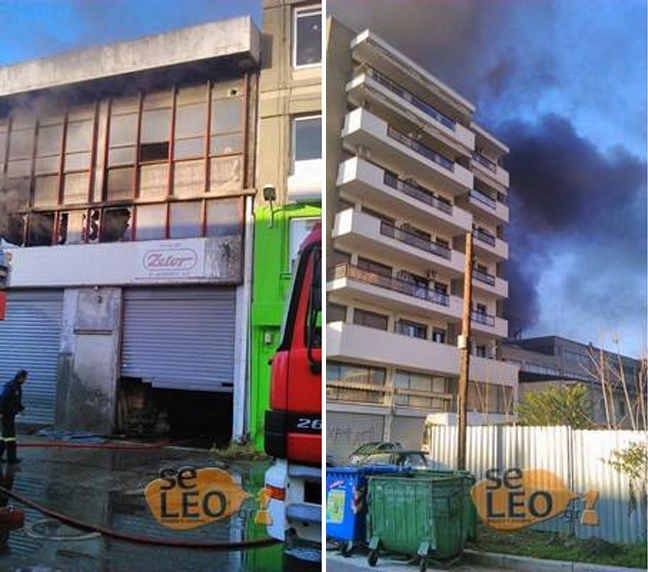 source: ΝΤΕΤΕΚΤΙΒ http://www.newsbeast.gr/greece/arthro/616790/se-exelixi-i-purkagia-se-apothiki-eidon-rouhismou-sti-thessaloniki-/