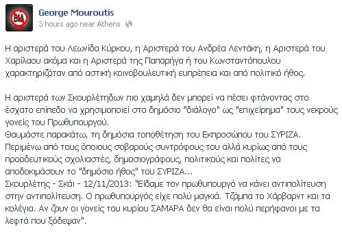 Οξεία επίθεση στον εκπρόσωπο του ΣΥΡΙΖΑ Πάνο Σκουρλέτη, κατασκευη eshop με αφορμή δήλωσή του για τον πρωθυπουργό Αντώνη Σαμαρά, κατασκευη eshop εξαπέλυσε ο διευθυντής του γραφείου Τύπου του Μαξίμου Γιώργος Μουρούτης.