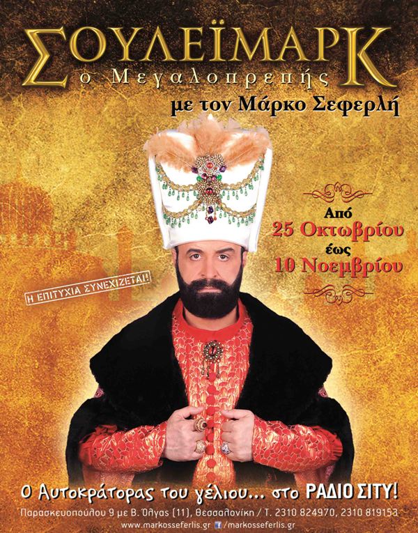 ΕΠΙΠΛΑ ΒΟΛΟΣ Ο Μάρκος Σεφερλής επισκέπτεται τη Θεσσαλονίκη για να παρουσιάσει την παράσταση «Σουλεϊμάρκ ο Μεγαλοπρεπής», ΕΙΔΙΚΕΣ ΚΑΤΑΣΚΕΥΕΣ ΕΠΙΠΛΩΝ ΒΟΛΟΣ στο ΡΑΔΙΟ ΣΙΤΥ……