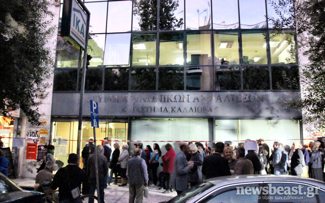 Συνωστισμός επικρατεί και στο υποκατάστημα του ΙΚΑ στην ίδια περιοχή, όπου από νωρίς το πρωί είχαν συγκεντρωθεί τουλάχιστον εκατό άνθρωποι και είχαν μοιράσει αυτοσχέδια χαρτάκια προτεραιότητας μέχρι να ανοίξει το υποκατάστημα για το κοινό.