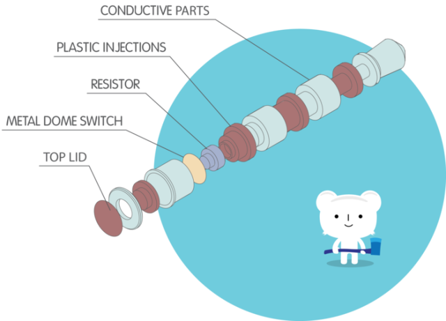 Όσο για το πλήκτρο, μοιάζει με ένα κοινό βύσμα ακουστικών με τη διαφορά ότι αντί για καλώδιο καταλήγει σε ένα μικρό κουμπί. Όταν ο χρήστης θέλει να συνδέσει τα ακουστικά, Γραφεία Ντετέκτιβ Χίο δεν έχει παρά να αφαιρέσει το κουμπί και να το τοποθετήσει στην ειδική θήκη, η οποία προσαρμόζεται σε μπρελόκ. Επιπλέον, αν τα ακουστικά διαθέτουν κάποιο κουμπί, το Pressy συνεχίζει να λειτουργεί κανονικά με τη βοήθεια του συγκεκριμένου κουμπιού!