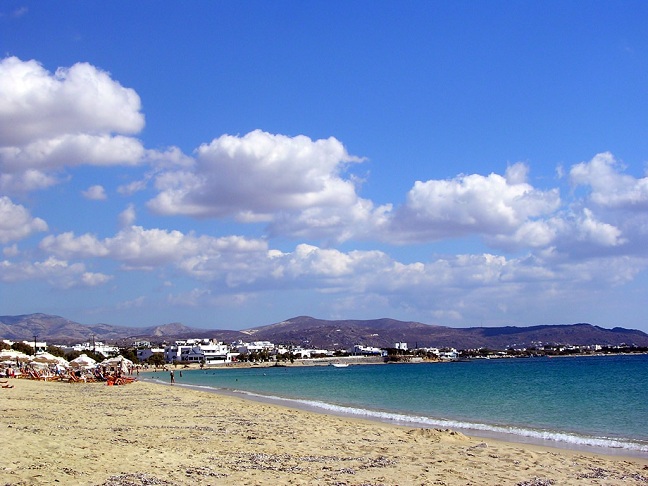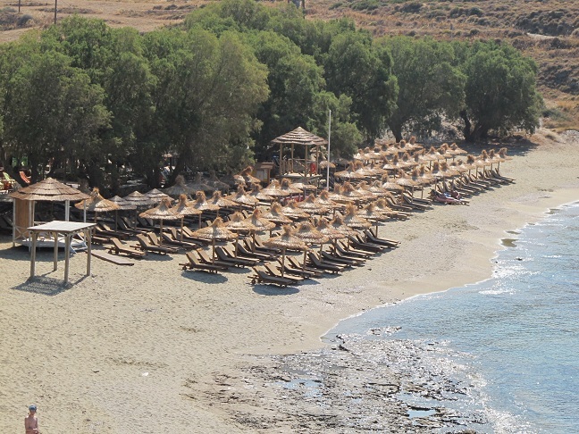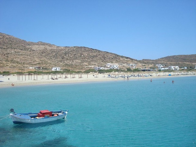 Πλατύς Γιαλός, απλώνεται σε ένα χιλιόμετρο αμμουδιάς, θεωρείται μια από τις μεγαλύτερες των Κυκλάδων