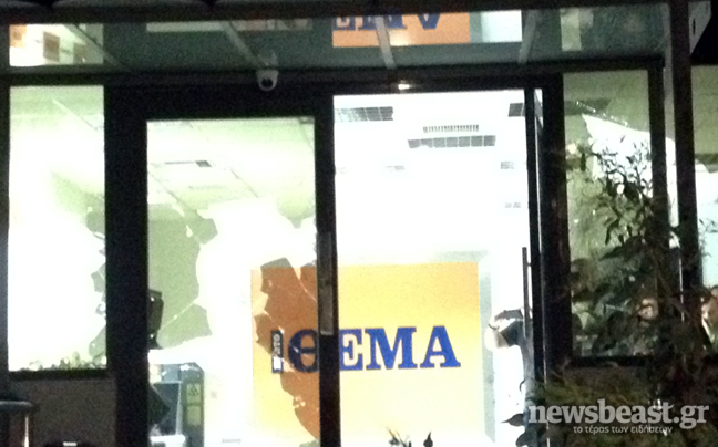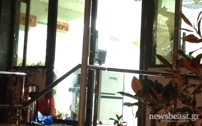 Φωτογραφίες από την επίθεση στο Πρώτο Θέμα ΕΠΙΠΛΑ ΒΟΛΟΣ Άγνωστοι πέταξαν μπογιές και πέτρες στο κτίριο στο Μαρούσι