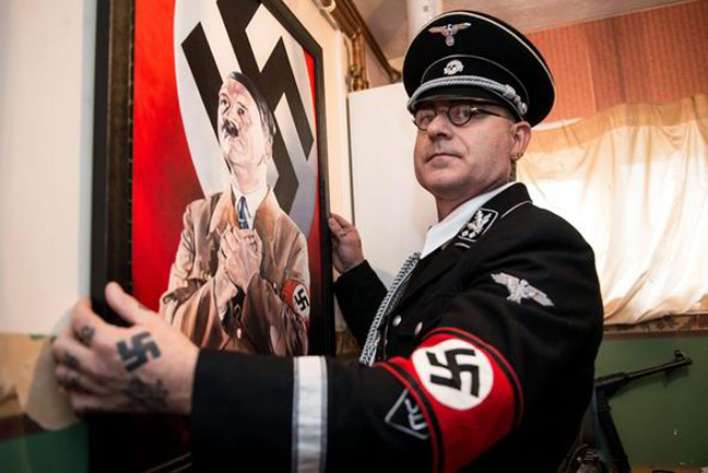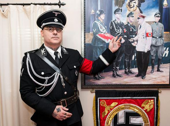 Τελικά φάνηκε πως δεν ήταν αστείο ενώ ο 48χρονος εξήγησε πως ήθελε να μοιράσει κάρτες με την ιστοσελίδα του, όπου εξηγεί τους λόγους για τον οποίο είναι ενθουσιώδης με τον Αδόλφο Χίτλερ.